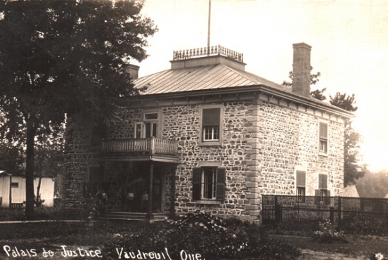 L’ancien palais de justice de Vaudreuil1 est construit en 1859-1860, selon les plans d’Adolphe Moffatt (1825-1902), directeur instituteur de l’école des garçons du village2. Il est érigé au cœur du chef-lieu du comté de Vaudreuil sur un terrain offert par Robert William Harwood (1826-1897)3. Le bâtiment abrite la cour de circuit de la Municipalité de comté de Vaudreuil. Si l’édifice en pierre cesse d’être utilisé comme cour de justice en 1922, il continue d’accueillir le bureau d’enregistrement foncier et les activités de la Municipalité de comté de Vaudreuil4. En 1982, la Municipalité de comté de Vaudreuil est remplacée par une nouvelle entité administrative, l’actuelle Municipalité régionale de comté de Vaudreuil-Soulanges (MRC). En 1986, la MRC s’installe dans ce bâtiment de façon permanente5 et elle y tient ses activités jusqu’en mars 2017 avant de déménager dans ses nouveaux locaux situés au 280, boulevard Harwood à Vaudreuil-Dorion6. Depuis 2020, l’ancien palais de justice est devenu la propriété de la Ville de Vaudreuil-Dorion. Avec l’église Saint-Michel, l’école modèle (collège Saint-Michel) et le couvent des Sœurs de Sainte-Anne, le palais de justice permet de prendre la pleine mesure de l’importance institutionnelle de l’ancien bourg de Vaudreuil.