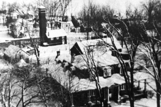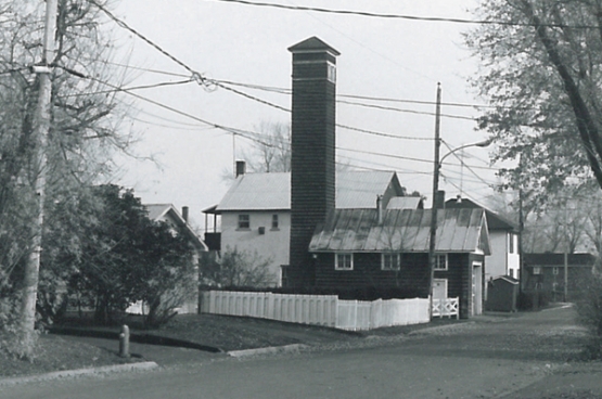 Avant L’ancienne station de pompe avec sa tour de séchage d’origine, vers 1928. © Bibliothèque et Archives nationales du Québec, E6,S7,SS1,P28627.