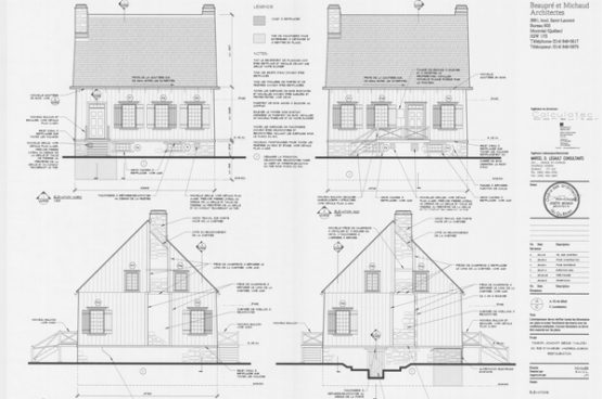 Plans, relevé, démolition et réfection. Maison Joachim Génus (Valois) 331, rue St-Charles, Vaudreuil-Dorion. Restauration. Dessiné par S. H. et V. L. approuvés par J. M. Beaupré et Michaud Architectes, 18 décembre 2006. Ville de Vaudreuil-Dorion, Services techniques, plan no 10.131.2, feuillets no A100 et A300.